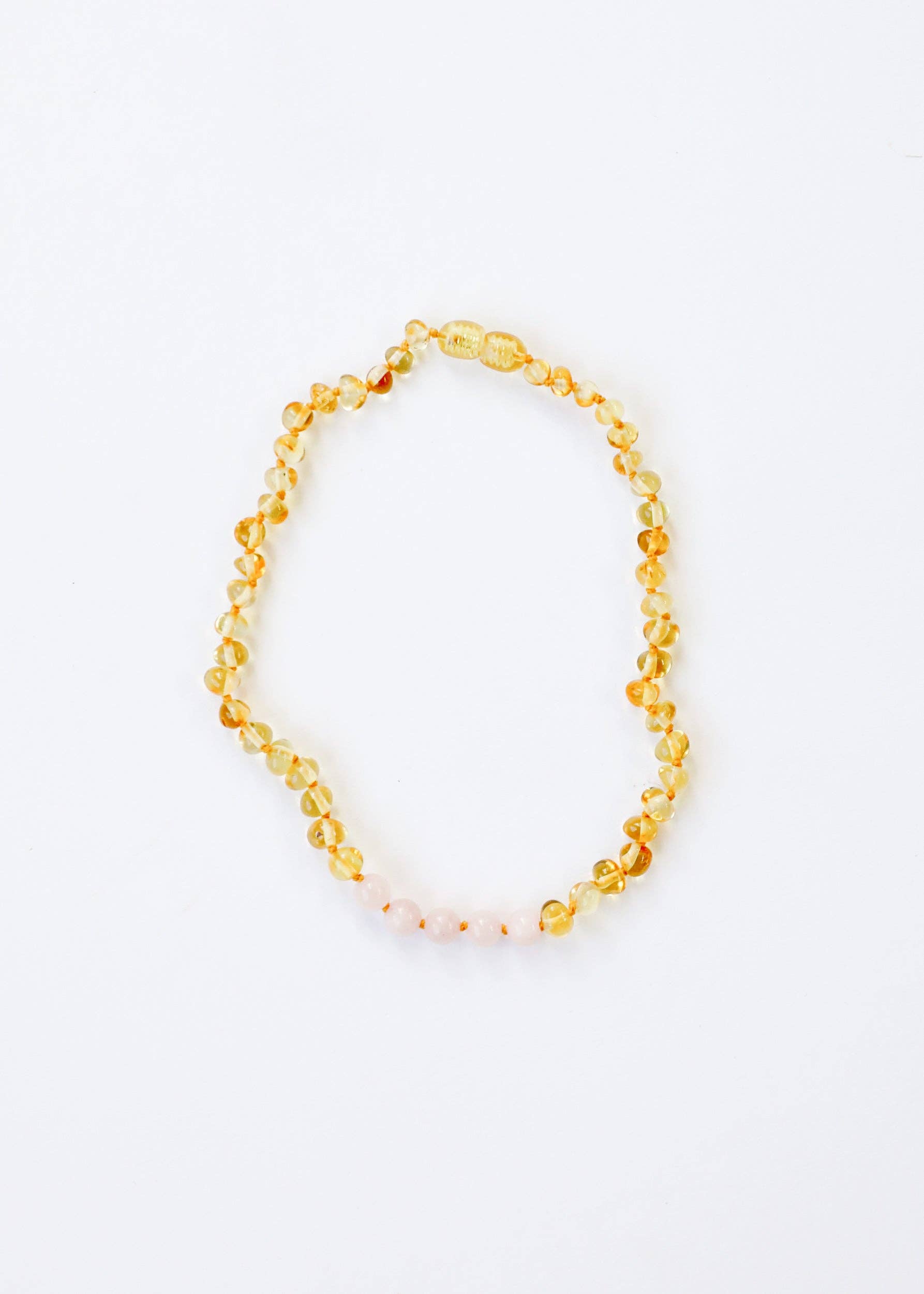 Polished Honey Amber and Rose Quartz Amber Necklace